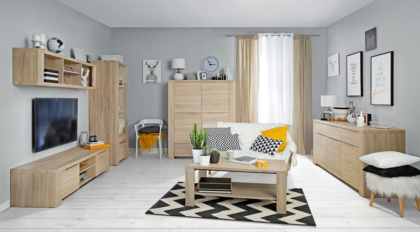 Dom powinien być ostoją bezpieczeństwa. We wnętrzu szukamy więc solidności i trwałości – ma być naszym oparciem. Taki efekt wywoła aranżacja z wykorzystaniem kolekcji CALPE. Masywne, geometryczne formy mebli wprowadzają niezbędny spokój i dają poczucie stabilności. Meble w kolorze jasnego dębu doskonale sprawdzą się w przestronnym, gustownym salonie w ciemnych kolorach (magia kontrastów!), ale i niebanalnej, nieco monochromatycznej aranżacji w nowoczesnym, prostym stylu (niech żyje minimalizm!).