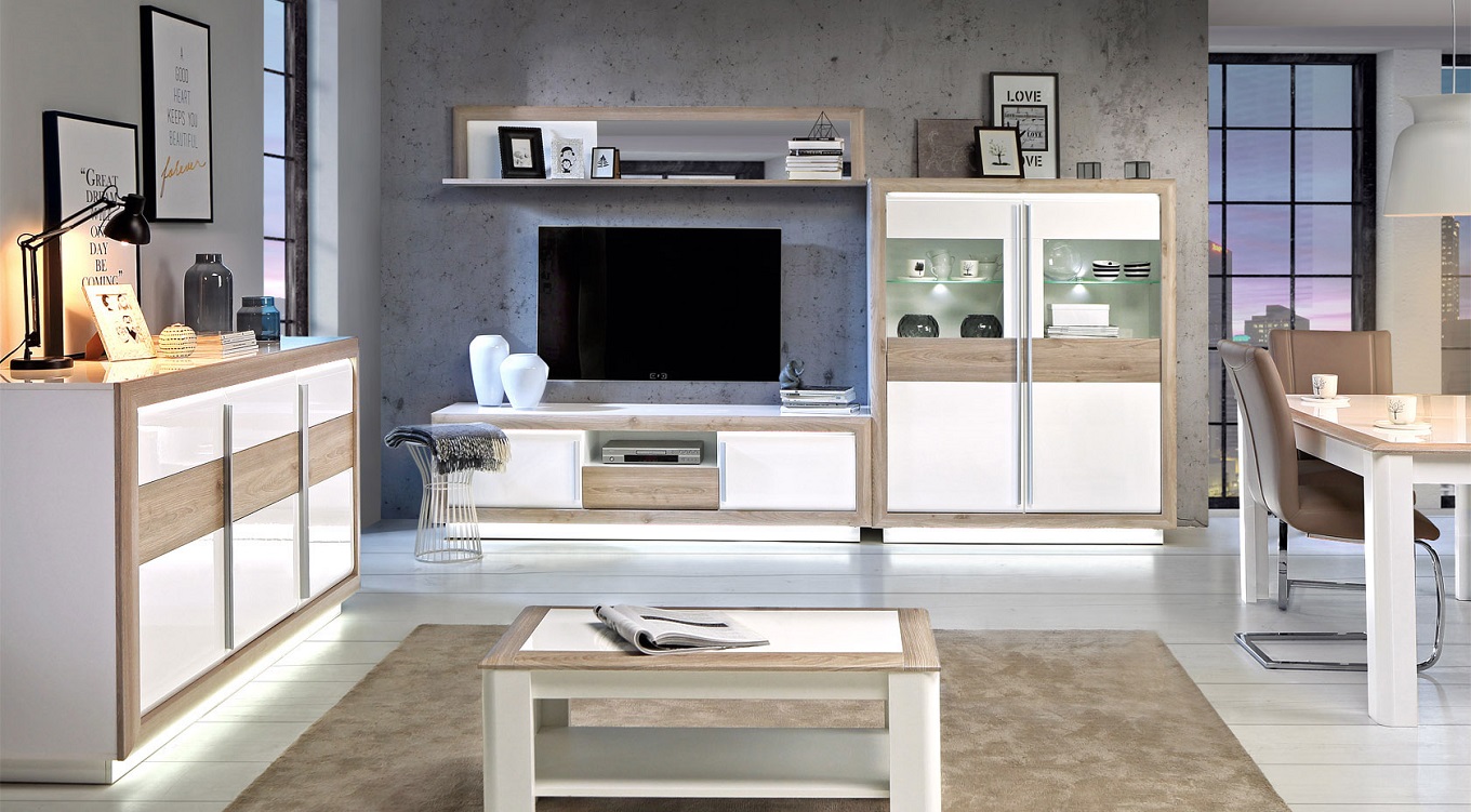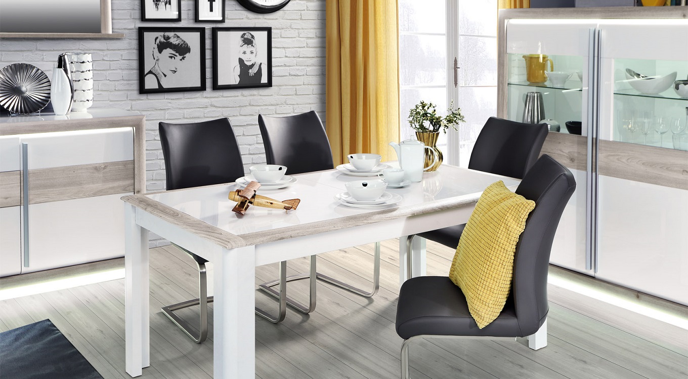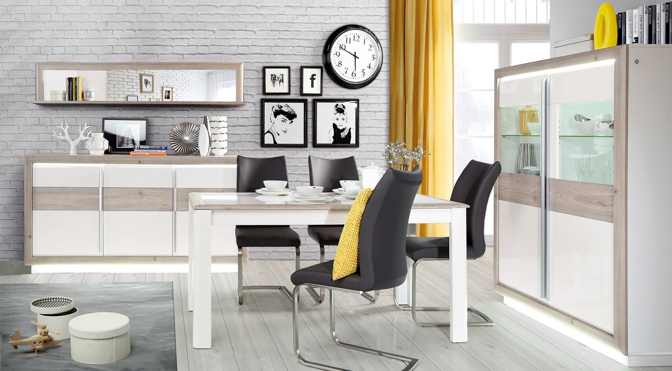 Nutka nowoczesności w klasycznym wydaniu. Uwagę zwracają subtelny, dębowy dekor korpusu (kłania się Dąb Nelson), białe, połyskujące fronty, a przede wszystkim duże, metaliczne uchwyty. Masywne, a jednocześnie urzekające subtelnością, przywodzą nam na myśl wyważoną, minimalistyczną, wręcz loftową stylistykę. Meble z kolekcji CANNE stają się tym samym kwintesencją nowoczesnego designu XXI wieku. Modernistyczny styl podkreśla efektowne oświetlenie, którego włącznik (uwaga, uwaga!) ukryty jest na obudowie mebli. Z pozoru niewidoczny będzie na wyciągnięcie naszej dłoni.