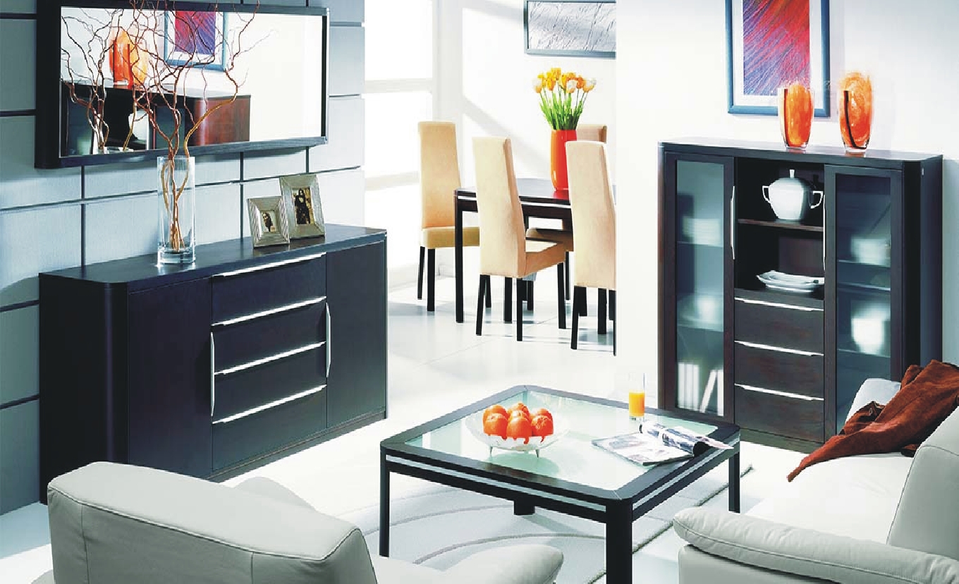 Przyjazne, pozbawione ostrych krawędzi formy, bryły proste - ozdobione jedynie listwami w kolorze aluminium. Poszczególne elementy programu z łatwością możemy zestawiać w indywidualnie kreowane układy – tworząc efektowne meblościanki.