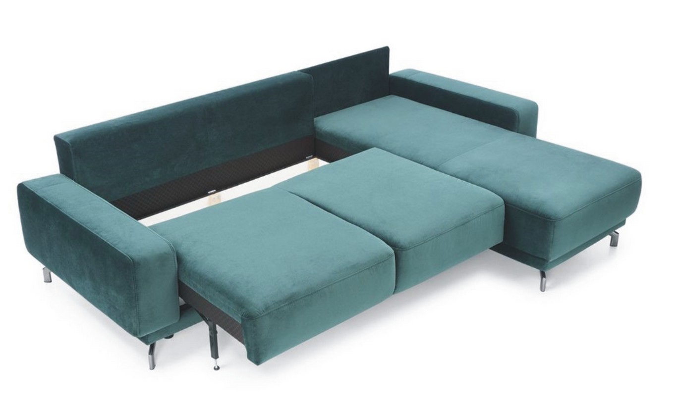 Meble wypoczynkowe Veneto to kolekcja na prostych smukłych nogach, w czarnym macie. Kolekcja Veneto ma gładkie siedziska, oparcia są bez przeszyć. Oparcie stanowią luźne poduchy, które należy zdjąć jak chcemy rozłożyć funkcję spania. Funkcja spania w narożniku Veneto to system DL, który jest funkcjonalny i niesamowicie prosty w użytkowaniu. Narożnik posiada również pojemnik na pościel, w którym możemy schować pościel czy koce.