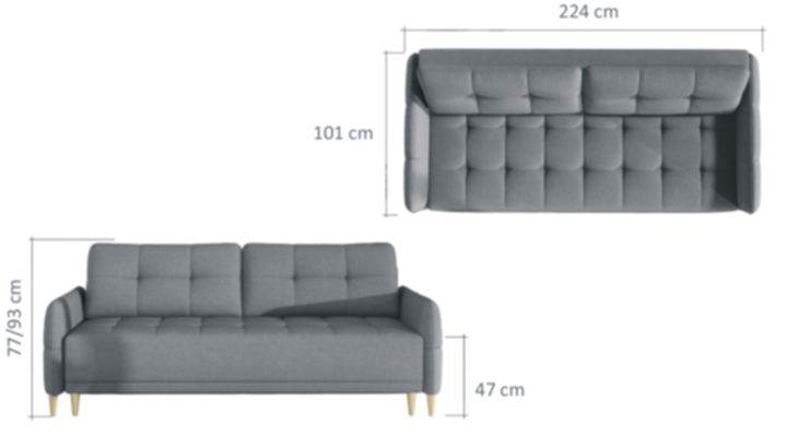 Malmo to sofa w stylu skandynawskim z fabryki Wersal. Ustawiona jest na drewnianych nóżkach dzięki temu wygląda elegancko. Pikowane siedziska, oparcie i boki wyglądają bardzo korzystnie. Dzięki szerokiej gamie kolorów tapicerki, Malmo dopasuje się do każdego wnętrza. Stworzona z najwyższej jakości materiałów, siedziska wypełnione piankami wysokoelastycznymi. Mebel z funkcją spania oraz pojemnikiem na pościel.