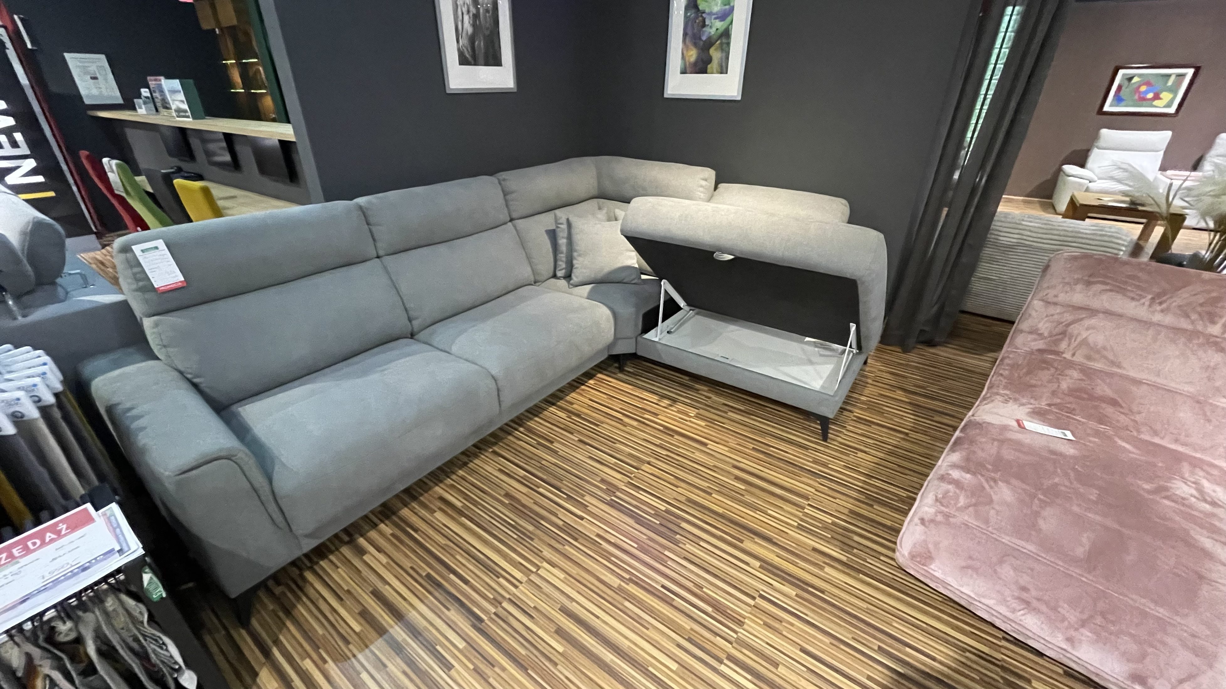 Narożnik rozkładany Legato wyróżnia się wygodnym, wysokim oparciem oraz stosunkowo głębokim siedziskiem. Materiały wypełnienia zastosowane w tym modelu dodatkowo sprawiają, że komfort siedzenia jest doskonały. Prosty, surowy kształt sofy narożnej Legato łagodzą puszyste poduchy oparcia. Wypoczynek ten został wyposażony również w funkcję spania okazjonalnego oraz niewielki pojemnik. Cechy produktu