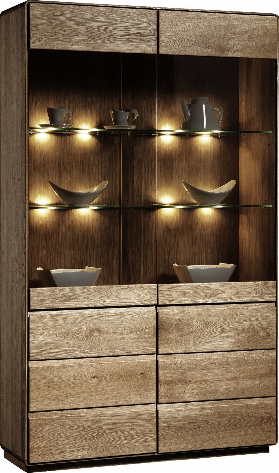 Dość istotną kwestią przy wyborze mebli skrzyniowych jest ich oświetlenie. Zwłaszcza kiedy decydujemy się na witrynę, zastanawiamy się co będziemy w niej eksponować i czy chcemy dodatkowo to podkreślić. Oświetlenie podkreśli kształt oraz fakturę wystawionych przedmiotów, a w połączeniu ze szklanymi rzeczami stworzy ciekawe efekty optyczne.