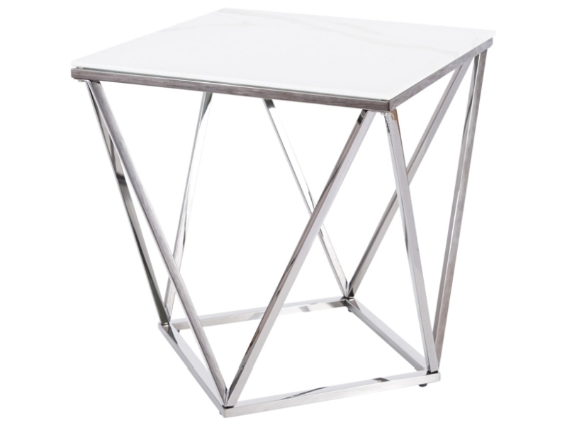 blat: szkło hartowane, stelaż: stal nierdzewna, kolor: biały, efekt marmuru / stalowy
