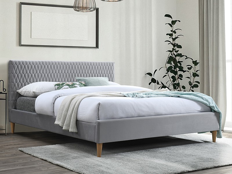 ŁÓŻKO AZURRO VELVET 140X200 KOLOR JASNY SZARY/DĄB TAPICERKA BLUVEL 03