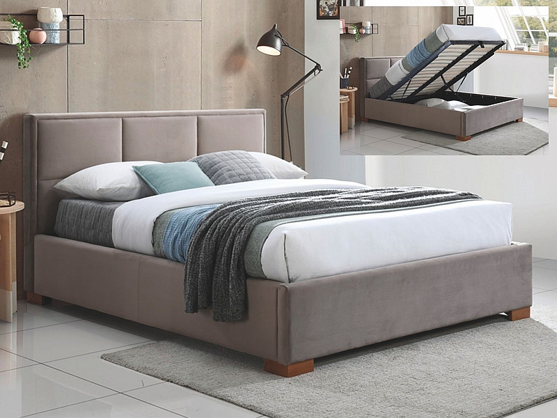 ŁÓŻKO MAISON VELVET 160x200 KOLOR BEŻOWY/DĄB TAPICERKA BLUVEL 40