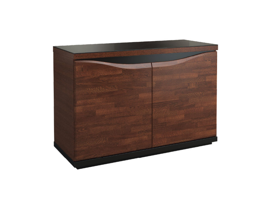 Kolekcja Venezia producenta Mebin dostępna jest w wybarwieniu orzecha antycznego w połączeniu z czarnym szkłem Lacobel. Witryny oraz barek dodatkowo mają podświetlenie, które doda dyskretne refleksy świetlne w pomieszczeniu, oraz wyeksponuje przedmioty ozdobne.