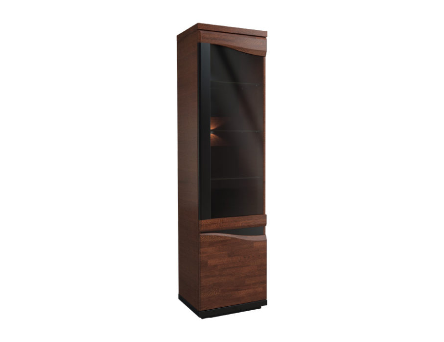 Kolekcja Venezia producenta Mebin dostępna jest w wybarwieniu orzecha antycznego w połączeniu z czarnym szkłem Lacobel. Witryny oraz barek dodatkowo mają podświetlenie, które doda dyskretne refleksy świetlne w pomieszczeniu, oraz wyeksponuje przedmioty ozdobne.