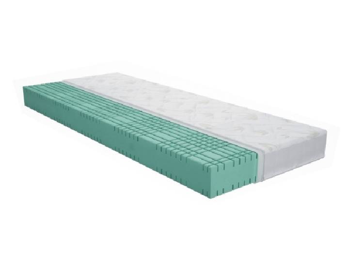 Materac firmy Merita. Wypełniony wysokoelastyczną, 7-polową pianką 50kg/m3, grubość 18cm. Blok cięty konturowo zapewniający odpowiednie podparcie ciała oraz lepszą cyrkulację powietrza. Twardość: miękki/średni (H2/H3). Wysoka gęstość pianki zapewnia dobre podparcie osobom o większej jak i mniejszej wadze ciała. Wymagany stelaż elastyczny. Dostępne pokrowce: Aloe Vera, Tencel, Greenfirst, Coolplus, Stressfree, Fresche oraz Intense, Silver, Termo Control i Organic Cotton Bawełna.