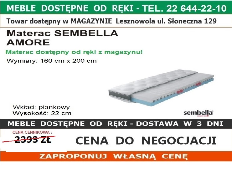 Sembella to polski producent specjalizujący się w produkcji materacy, łóżek, stelaży, poduszek i dodatków. Cechy produktu