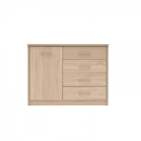 OpisKomoda została zaprojektowana w nowoczesnym stylu. Dostępna jest w dwóch wybarwieniach: dąb Sonoma jasny, dąb Sonoma cappuccino. Komoda posiada dodatkowo 4 funkcyjne szuflady. Ładny design oraz perfekcyjne wykonanie to główne cechy systemu Cremona. Duża paleta konfiguracji powoduje, że poszczególne elementy systemu płynnie łączą się w idealne zestawienia, a to co nas otacza, sprawia, że sen jest przyjemną podróżą w miejsca, o których widoku ciągle marzymy. Cechy produktu