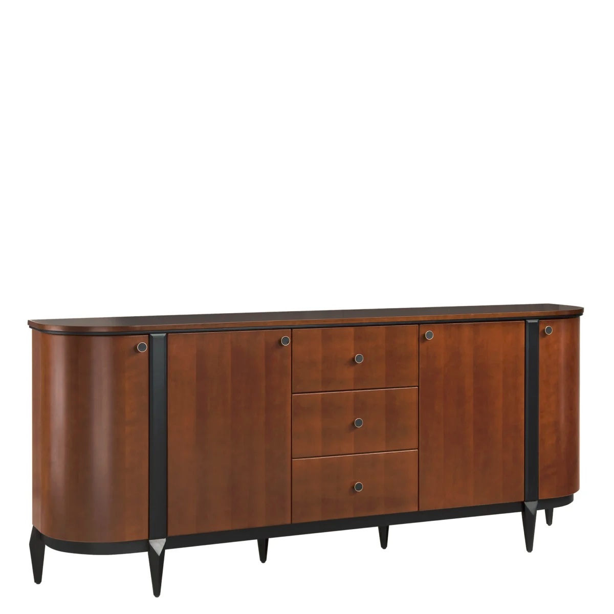 Art-Deco to jedna z najbardziej charakterystycznych kolekcji mebli od producenta Taranko, która przenosi nas w czasy międzywojennej elegancji i wyrafinowania. Styl art déco, który zdominował wnętrza lat 20. i 30. XX wieku, powraca w nowej odsłonie – pełnej szlachetności, harmonii i nowoczesnych akcentów. Taranko interpretuje ten ponadczasowy trend z dużą wrażliwością na detale, tworząc kolekcję, która doskonale wpisuje się zarówno w klasyczne, jak i współczesne aranżacje. Centralnym punktem tej kolekcji jest piękne wybarwienie orzechowe, które nadaje meblom ciepły, głęboki ton i podkreśla naturalne usłojenie drewna. To barwa elegancji i spokoju, która wprowadza do wnętrza atmosferę luksusu i ponadczasowej klasy. W połączeniu z czarnymi akcentami – nogami, ramami i pionowymi wstawkami – meble zyskują wyrazisty, graficzny charakter, który nadaje przestrzeni dynamiki, nie przytłaczając jej. W skład kolekcji wchodzą: komody o zróżnicowanych wymiarach, wysoka witryna z podświetleniem LED, szafka RTV o eleganckim, opływowym froncie, stół z dopasowanymi krzesłami o tapicerowanych oparciach, lustro w szerokiej, czarnej ramie. Każdy z tych elementów zaprojektowano z myślą o estetyce i funkcjonalności. Fronty mebli są delikatnie zaoblone, co dodaje lekkości i łagodzi geometryczne linie konstrukcji. Czarne, smukłe nóżki nadają bryłom lekkości optycznej, a złote uchwyty są subtelnym, eleganckim akcentem, który przyciąga wzrok. Wnętrza witryn zostały starannie zaprojektowane i podświetlone, tworząc przestrzeń nie tylko do przechowywania, ale również eksponowania dekoracji czy szkła. Art-Deco od Taranko to kolekcja dedykowana osobom, które cenią wysoką jakość wykonania, ręczne wykończenia i unikatowe wzornictwo. To propozycja dla tych, którzy chcą nadać swoim wnętrzom wyjątkowy, niepowtarzalny charakter – z jednej strony inspirowany klasyką, z drugiej – nowoczesny i świeży. Meble doskonale sprawdzą się w salonach, jadalniach, pokojach dziennych, a także w bardziej reprezentacyjnych przestrzeniach, takich jak gabinety czy eleganckie hole. Dzięki wyważonym proporcjom i dopracowanej kolorystyce, kolekcja Art-Deco świetnie komponuje się z dodatkami w stylu retro, glamour, klasycznym, a nawet loftowym. To meble, które nie wychodzą z mody – zachwycają detalem, trwałością i szlachetnością materiałów. Słowa kluczowe: Taranko, kolekcja Art-Deco, meble art déco, meble orzechowe, salon w stylu art déco, eleganckie meble, klasyczne wnętrze, stylowe komody, witryna art déco, nowoczesna klasyka, meble do jadalni, szafka RTV, meble z czarnymi akcentami, design lat 20., meble luksusowe, wnętrze z charakterem Cechy produktu