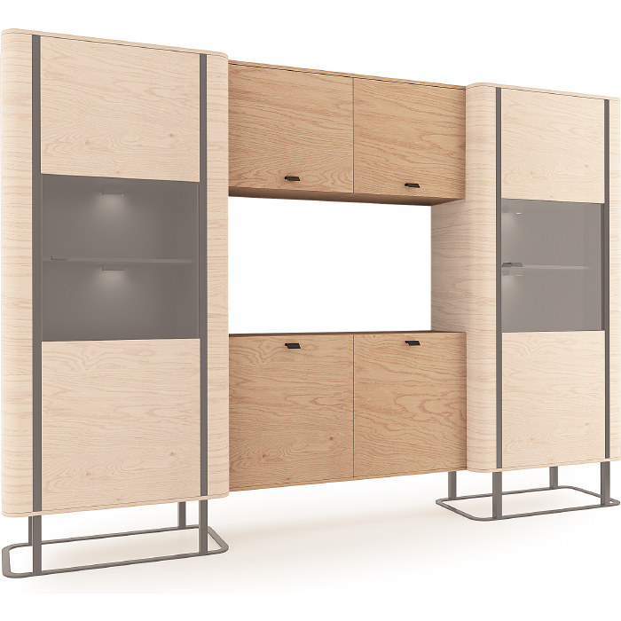 Kolekcja Grande, to niesamowite połączenie trzech materiałów wykończeniowych w meblach: naturalne drewno, metal oraz wysoki połysk. Są idealnymi meblami dekoracyjnymi, dzięki ledowemu oświetleniu, które znajduje się w ich ciemnym wnętrzu. Charakterystyczną cechą kolekcji, jest metalowa noga, która przechodzi przez całą wysokość mebla, nadaje im wrażenie lekkości. Cechy produktu