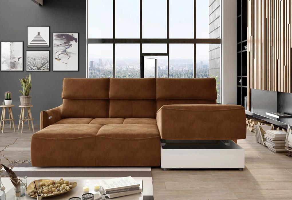 Nowoczesna forma, funkcjonalność i komfort to główne atuty kolekcji. Narożniki oferują wysokie podparcie głowy, gwarantując wygodną pozycję w trakcie wypoczynku. Dodatkową zaletą jest możliwość elektrycznej regulacji głębokości siedziska, pozwalającej na wysuw aż o 60 cm! Funkcja ta jest idealnym rozwiązaniem dla osób, którą poszukują dodatkowej przestrzeni gościnnej z możliwością okazjonalnego spania. Dodatkowym atutem jest ukryty w otomanie pojemnik, w którym można przechować poduszki i ciepły koc. Uniwersalne wzornictwo oraz zastosowanie zaawansowanej technologii zadowoli najbardziej wymagających użytkowników.